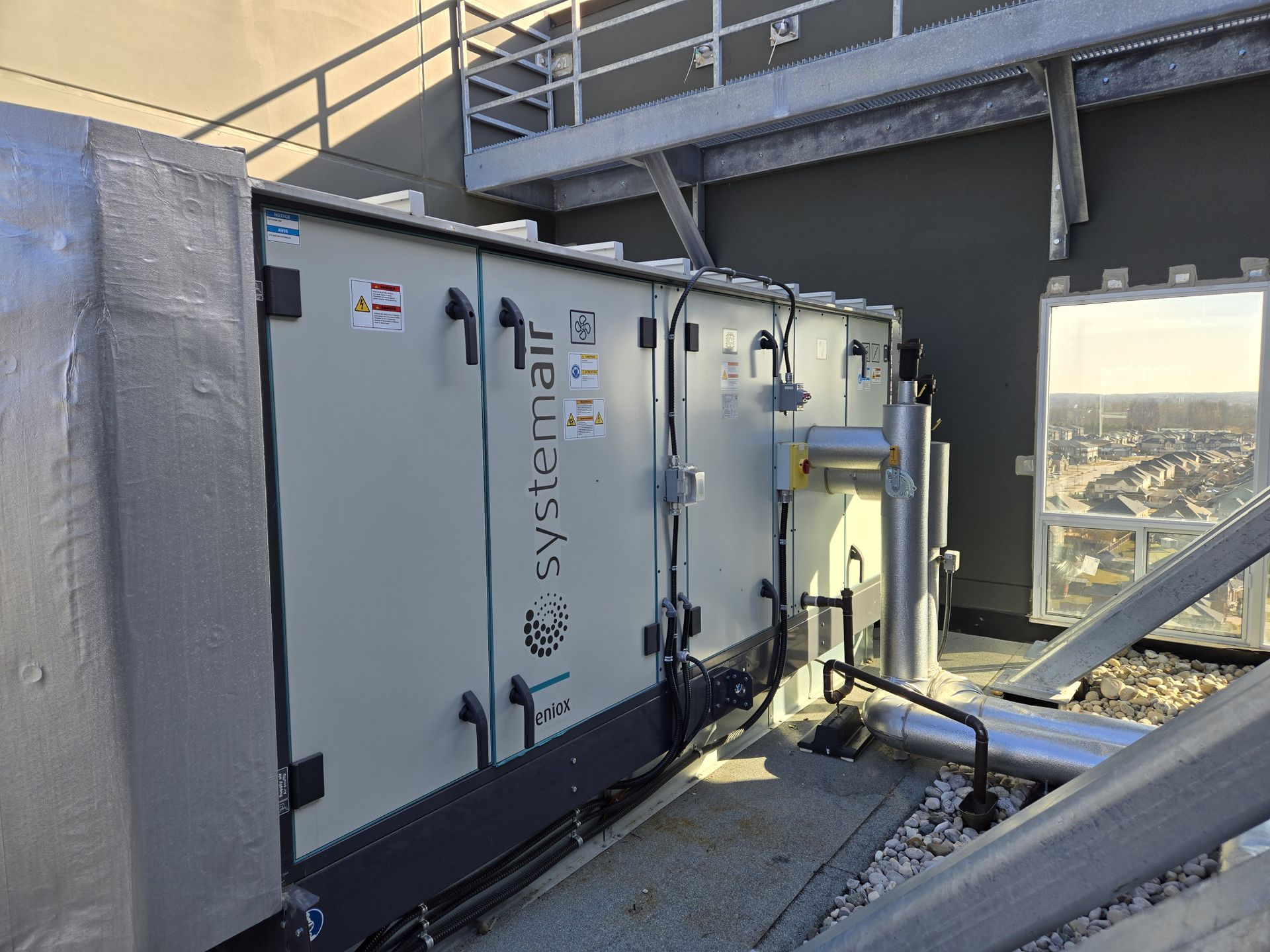 Geniox Side-by-Side (SBS) low-profile air handling units (AHU) are designed for rooftop installation. Since the units have airstreams in a side-by-side configuration, they offer a flat design that blends seamlessly with the building architecture.
