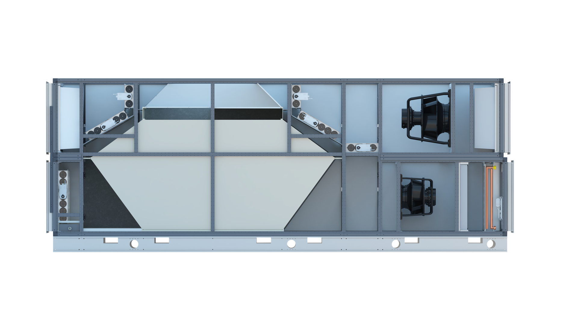 Tutustu uraauurtavaan koteloomme: joustava kokoonpano, laadukkaat materiaalit ja innovatiivinen jäähdytystekniikka asettavat uusia standardeja. Maksimaalinen suorituskyky, minimaalinen tilantarve ja vaikuttava ilmavirta 2 730 - 37 000 m³/h - täydellinen kumppani ensiluokkaiseen asennukseen!